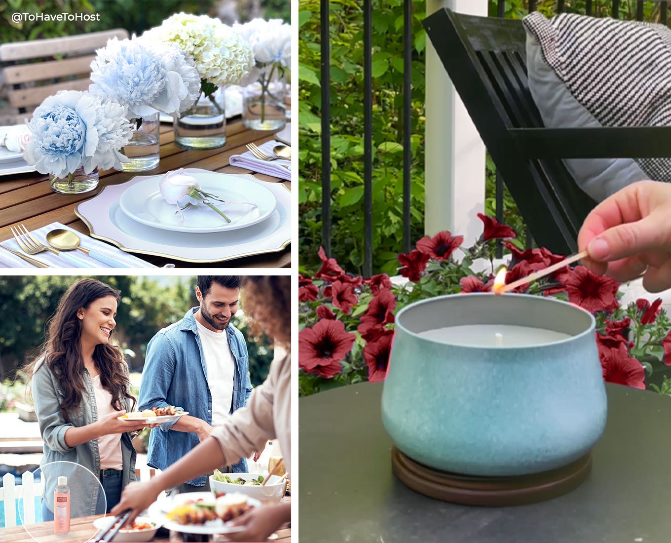 When the weather is warm and nice, there’s no better place to entertain than outside. Extend your party space onto the porch or patio with decorations and candles designed for the outdoors.